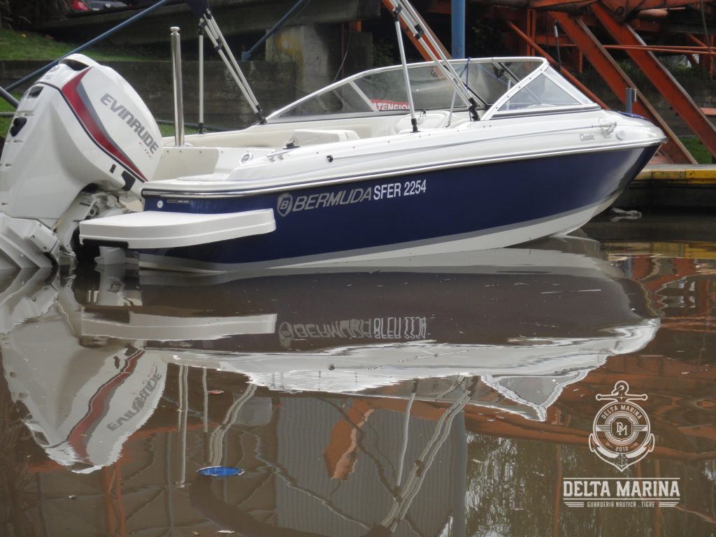 Tapicería de cockpit y proa completa – Escalera telescópica a popa – Herrajes de casco y cubierta – Bateria de 75 amp y corte corriente. El valor publicado corresponde a un equipo armado con un motor marca MERCURY 115 HP 4T.-