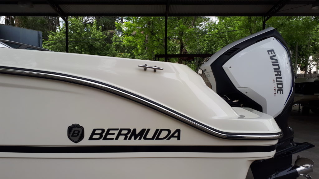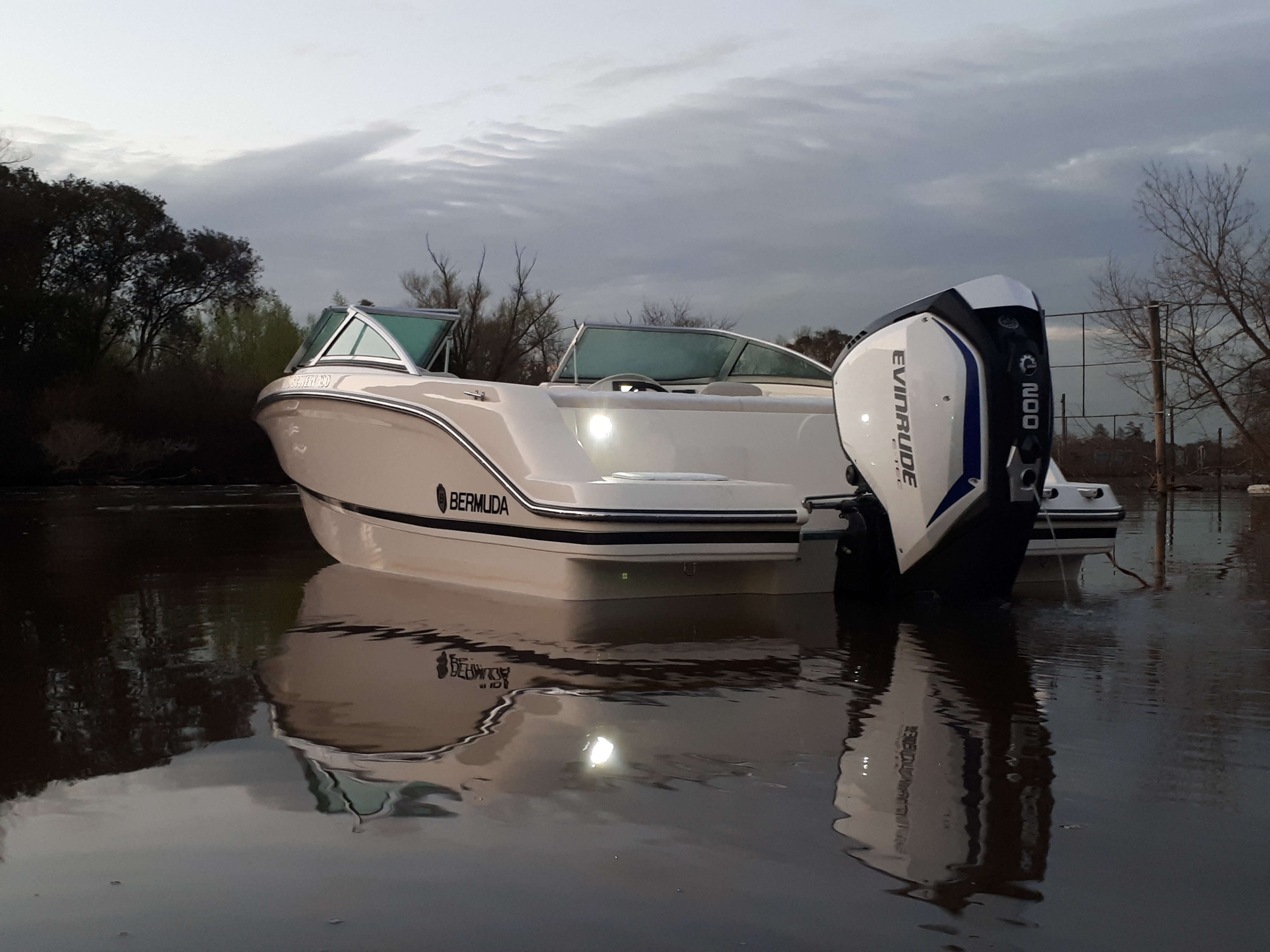 La Bermuda Discovery 190 es una lancha ideal para la familia. Es de proa abierta y ofrece toda la performance necesaria en un equipo práctico y cómodo. Su importante manga genera grandes espacios en el cockpit, facilitando el moverse y tomar sol. Además tiene a popa un sofá enorme y una práctica conservadora. El conductor y sus invitados estarán cómodos a todas las velocidades, es muy estable, de conducción sencilla y de muy sólido andar en marejada por efecto de la estructura en “H” de plástico y poliuretano. La Bermuda Discovery 190 se equipa con una importante variedad de motores fuera de borda de entre los 150 y 200 HP. XL ( 25″)