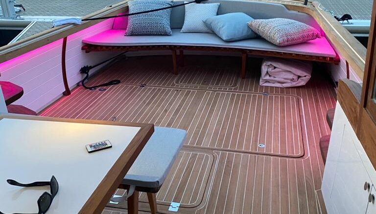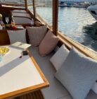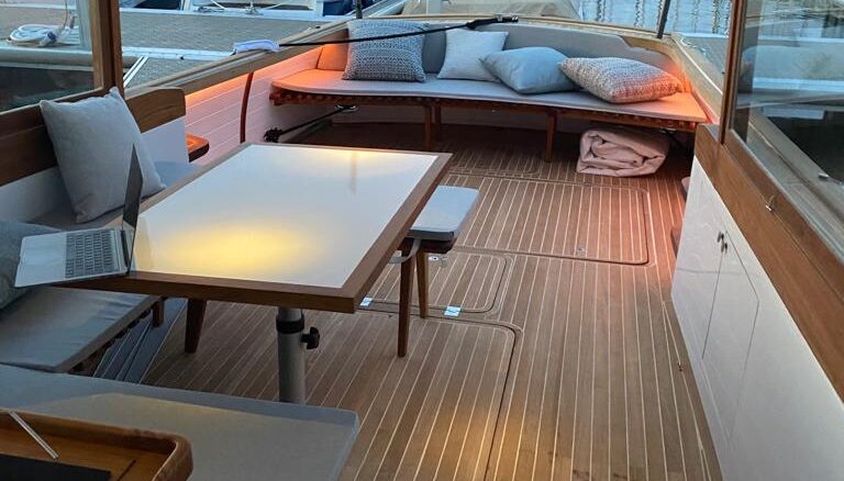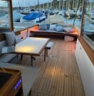 Santiago Lange y Yacht Design se inspiraron para hacer este proyecto en los cruceros del ’30, que todavía existen por suerte, y donde prevalecían la estética y disfrutar el espacio exterior. Cockpit grande y cómodo, y un interior abierto con comodidad para una familia de cuatro. Los dos cruceros que estamos construyendo están equipados con motores híbridos Steyr, combinando el diésel con un pack eléctrico, que lo llevará a mas de 6 nudos en total silencio. Ademas tiene un sistema novedoso de fondeo, que permite guardar todo el sistema dentro del barco sin que esté en cubierta. Velocidad de crucero de 18 nudos, y la seguridad de tener dos motores en uno (eléctrico y diésel). Las lineas del casco lo harán planear a 15 nudos, o sea que navegar en este barco será un placer.